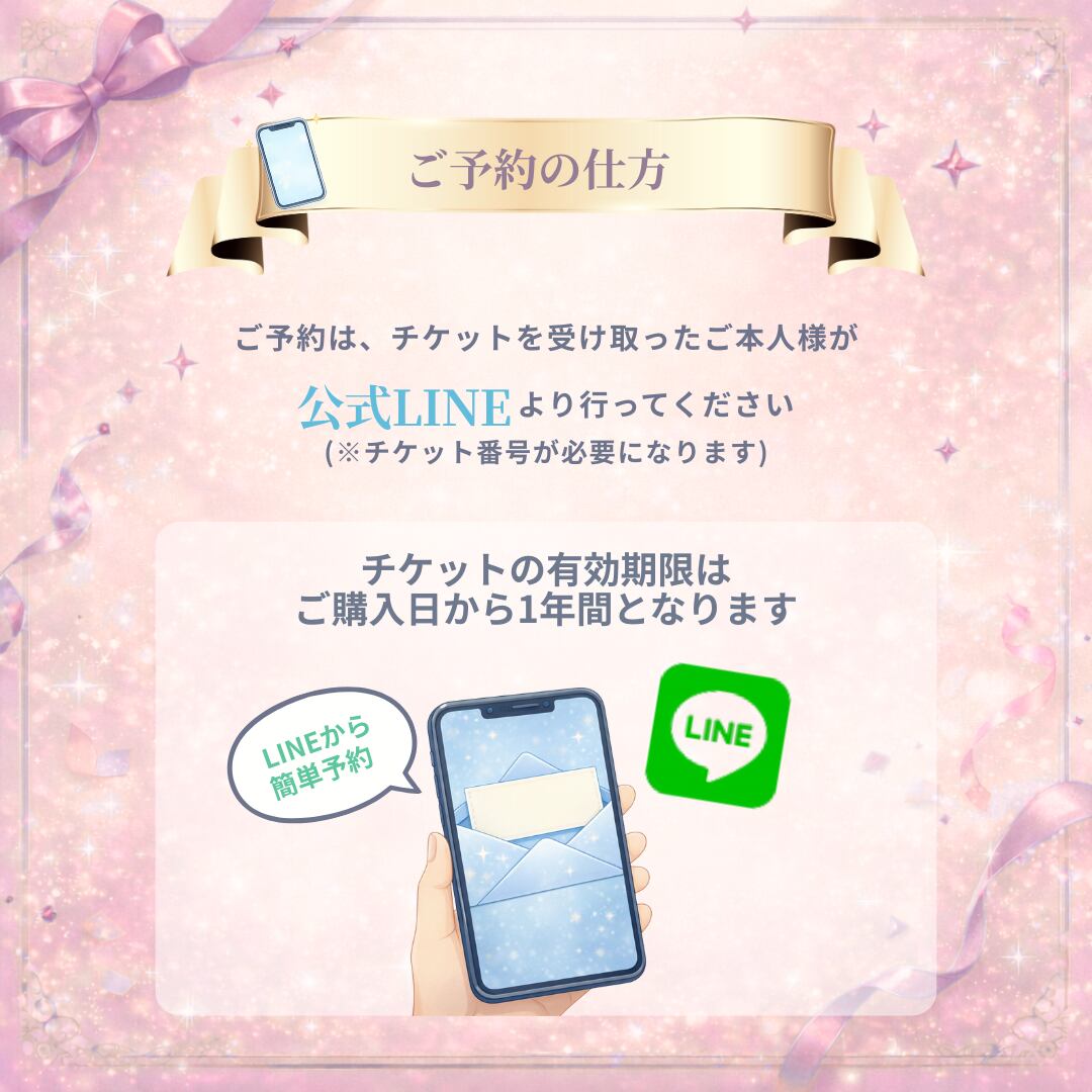 ・ご予約は、チケットを受け取ったご本人様が公式LINEより行ってください。